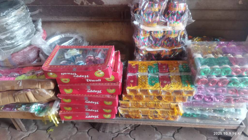 त्याचबरोबर मातीच्या पणत्या, रांगोळी विविध प्रकारचे रंग, छोटे कंदील, मेणबत्त्या विविध प्रकारची सुगंधी उठणे व सुवासिक साबण तसेच फटाके इत्यादींनी बाजारपेठेतील लोकांनी सजली आहे.