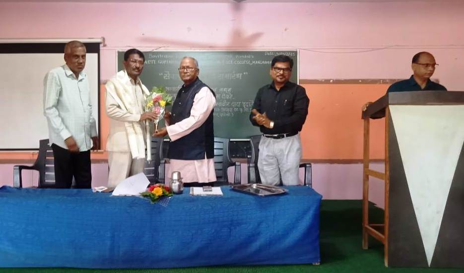 मंडणगड(प्रतिनिधी) : सावित्रीबाई फुले शिक्षण प्रसारक मंडळाच्या लोकनेते गोपीनाथजी मुंडे कला, वाणिज्य व विज्ञान महाविद्यालयातील वाणिज्य विषयाचे सहायक प्राध्यापक डॉ. रामदास देवरे हे आपल्या 29 वर्षांच्या प्रदीर्घ सेवेतून सेवानिवृत्त झाले. त्यांचा संस्था व महाविद्यालयाच्या वतीने शाल, श्रीफळ व भेटवस्तू देऊन सेवानिवृत्तीपर सत्कार करण्यात आला. कार्यक्रमाच्या अध्यक्षस्थानी संस्थेचे संस्थापक अध्यक्ष पद्मश्री कर्मवीर दादा इदाते होते. यावेळी कार्याध्यक्ष श्रीराम इदाते, सहकोषाध्यक्ष श्री. सुनील मेहता, उपप्राचार्य डॉ. वाल्मिक परहर, डॉ. विष्णू जायभाये, श्री. नितीन मेहता आदी मान्यवर उपस्थित होते.