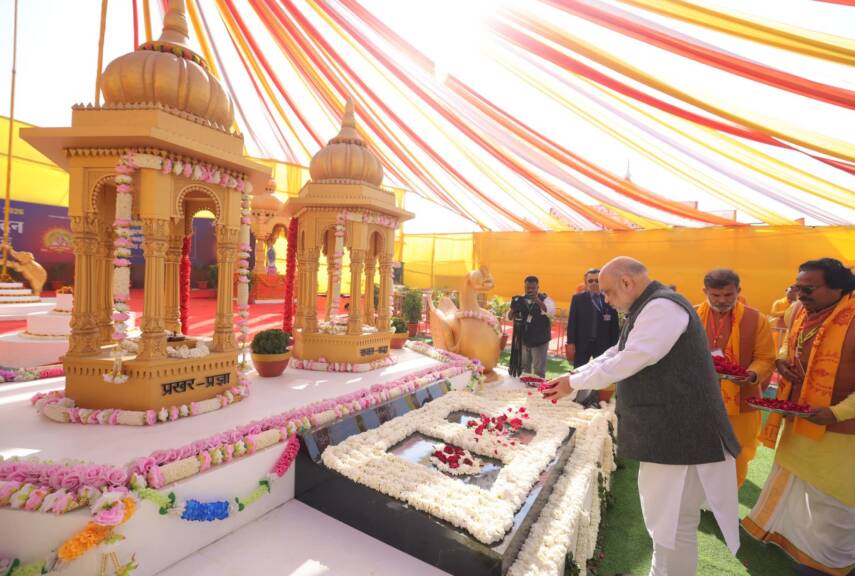 त्यानंतर गृहमंत्री अमित शहा अखिल विश्व गायत्री परिवाराने आयोजित केलेल्या शताब्दी समारंभाच्या ठिकाणी बैरागी कॅम्प येथे पोहोचले. त्यांनी माता भगवती देवी शर्मा आणि पंडित श्रीराम शर्मा आचार्य यांना पुष्पांजली वाहिली आणि दीपप्रज्वलन करून कार्यक्रमाची सुरुवात केली.