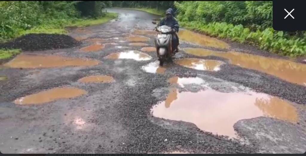 संगमेश्वर बुरबी दरम्यान आणि संगमेश्वर साखरप्या दरम्यान खड्ड्यांमध्ये पावसाचे पाणी साचल्याने त्यांचा अंदाज न