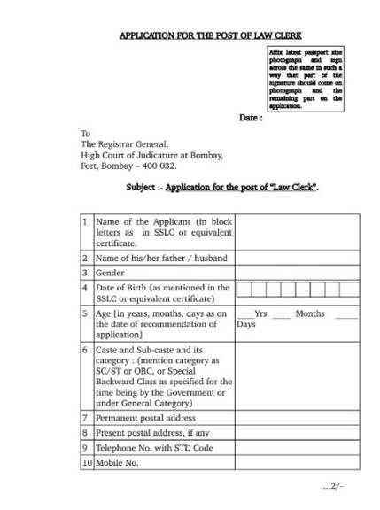 मुंबई उच्च न्यायालय कायदा लिपिक भरती २०२३ ( Mumbai High Court Law Clerk Recruitment 2023) साठी अर्ज करणाऱ्या उमेदवारांनी आपले अर्ज रजिस्टार, उच्च न्यायालय, अपील बाजू, पाचवा मजला, नवीन मंत्रालय इमारत, जीटी हॉस्पीटल कंपाऊंड, अशोका शॉपिंग सेंटरच्या मागे, क्रॉफेट मार्केटजवळ, एल.टी मार्ग, मुंबई- ४००००१ येथे पाठवायचे आहेत. अधिकृत वेबसाइट bombayhighcourt.nic.in वर याचा सविस्तर तपशील देण्यात आला आहे.