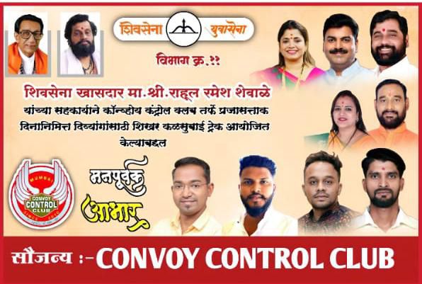 चेंबूर : (महेश शेटे) कॉनव्होय कंट्रोल क्लब मागील १४ वर्षे दिव्यांगांचे सक्षमीकरण करण्यासाठी नेहमीच कार्यरत असुन दिव्यांग व्यक्तींसाठी साहसी मोहीम,बाईक रायडींग, सायकलिंग, गिर्यारोहण तसेच इतर दिव्यांग खेळ ज्या मुळे दिव्यांग व्यक्तींचे मनोबल आणि आत्मविश्वास वाढेल ह्या उद्देशाने सन २०१० पासून २६ जानेवारी प्रजासत्ताक दिन रोजी क्लबच्या माध्यमातून महाराष्ट्राचे उंच शिखर कळसुबाई येथे दरवर्षी एक ट्रेक आयोजित केली जाते,