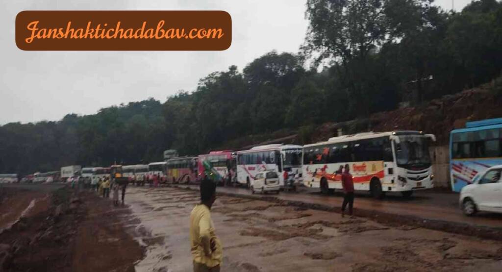 मुंबई-गोवा महामार्गावर Mummbai-Goa Highway परशुराम घाटात दरड कोसळल्याने रस्त्यावर वाहनांच्या लांबच लाब रांगा लागल्या आहेत.