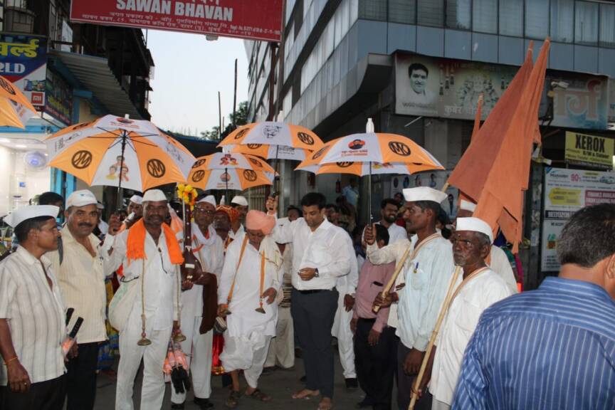 या प्रसंगी अध्यक्ष श्री. मयुर कांबळे यांच्यासह देवेंद्र कांबळे, स्वामी जावळे, मोहम्मद हुसैन, सफी शेख, भटू अहिरे, विनोद सातपुते, गणेश झिंजू्र्डे, दिंडी चालक समिती अध्यक्ष ह. भ. प. नारायण पाटील महाराज, सचिव-ह. भ. प. चंद्रकांत कारंडे, छ्बूबाई पवार व पदाधिकारी, कार्यकर्ते, बहुसंख्य वारकरी बांधव उपस्थित होते.