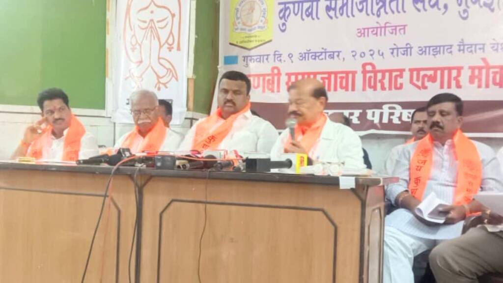 “मराठा आंदोलकाचा धसका घेऊन राज्य सरकारनं जीआर काढला आहे. आमच्या अनेक समस्या आहेत. याचा सरकारनं विचार केला पाहिजे. मराठा समाजाला सारथी संस्थेच्या माध्यमातून अनेक सवलती आहेत. तशा सवलती आम्हास नाहीत. ओबीसींच्या 372 जाती आहेत. त्यामुळं आमच्या वाटेचे जर आरक्षण दिले तर आमच्यावर अन्याय होईल. मराठा आरक्षण रद्द करावे ही आमची प्रमुख्य मागणी आहे. आमच्या मोर्चात सर्व राज्यातील कुणबी समाज एकत्र येईल. मंडल आयोगाने जे निकष आखून दिले आहेत, यात मराठा आरक्षण बसत नाही. राजकारण्यांनी केवळ मतांसाठी मराठा आरक्षण दिले आहे. यात ओबीसी समाज भरडला जातोय,” असा आरोप संघटनेचे चिटणीस कृष्णा वणे यांनी केला. तर “यापूर्वी या कुणब्यांच्या नावाने अनेकांनी फायदा घेतला आहे. आम्हाला खड्यासारखे बाजूला केले आहे. मराठा समाज जे-जे मागेल ते दबावाखाली दिले जात आहे. मुख्यमंत्री म्हणतायेत की आमचा डिएनए ओबीसी आहे. मग तुम्ही ओबीसी समाजासाठी काय केले?,” असा सवाल यावेळी कृष्णा वणे यांनी उपस्थित केला. “आमच्या मोर्चात ज्या मागण्या आहेत, त्या मान्य झाल्या नाहीत तर आमचा लढा अधिक तीव्र होईल. आम्ही देखील सरकारच्या मानेवर पाय ठेवल्याशिवाय राहणार नाही,” असा इशारा संघटनेचे अध्यक्ष अनिल नवगणे यांनी सरकारला दिला आहे.