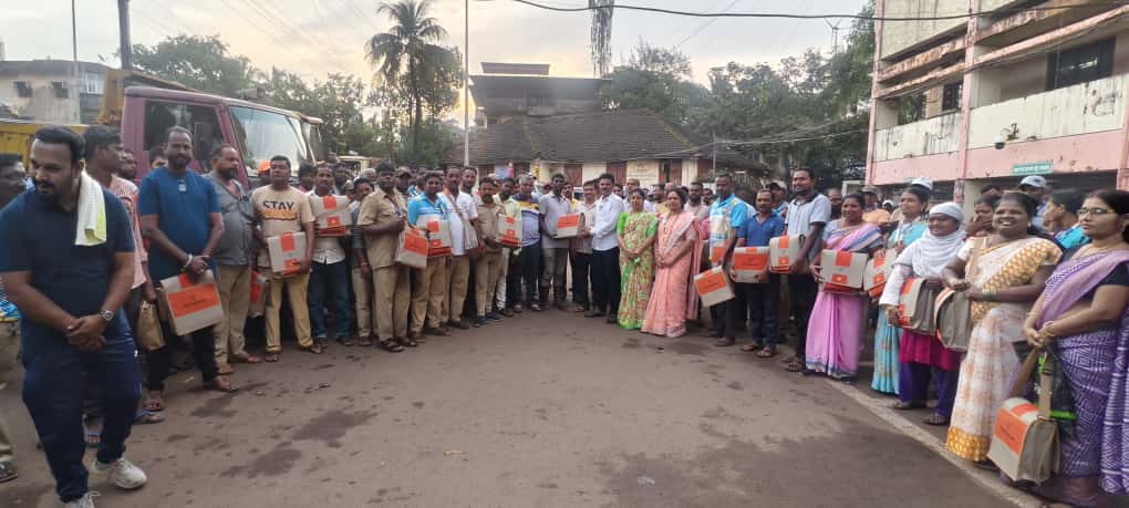 या उपक्रमाचे आयोजन माननीय प्रदेशाध्यक्ष रवींद्र चव्हाण साहेब तसेच जिल्हाध्यक्ष राजेश सावंत यांच्या मार्गदर्शनाखाली करण्यात आले. रत्नागिरी शहर स्वच्छ ठेवण्यासाठी नेहमीच कष्ट करणाऱ्या नगरपरिषद आरोग्य विभागातील कर्मचारी वर्गाचे तोंड गोड करण्यासाठी आणि त्यांच्या कार्याबद्दल कृतज्ञता व्यक्त करण्यासाठी हा उपक्रम राबविण्यात आला. या कार्यक्रमाला 155 कर्मचारी उपस्थित होते.फराळ मिळाल्यानंतर कर्मचाऱ्यांच्या चेहऱ्यावर आनंद झळकला. त्यांनी दिलेल्या आशीर्वादातून त्यांच्या समाधानाची झलक स्पष्टपणे जाणवली. अनेक कर्मचाऱ्यांनी “आमच्या कामाचे कौतुक झाल्यामुळे खूप बरे वाटले,” अशा भावना व्यक्त केल्या.