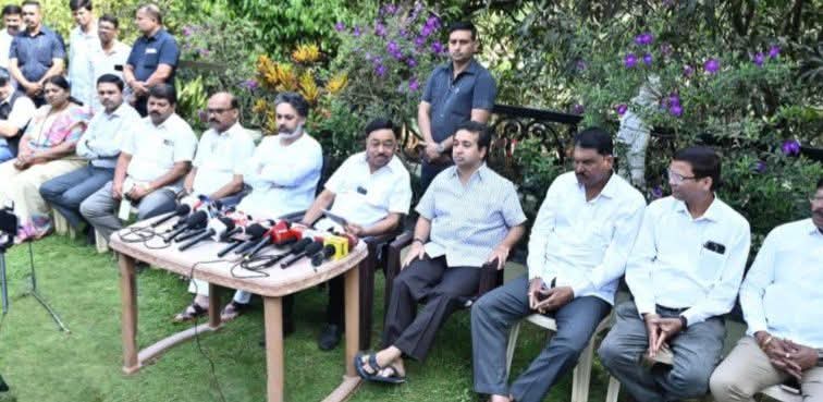 कणकवली येथील ओम गणेश निवासस्थानी महायुतीची पत्रकार परिषद आयोजित करण्यात आली होती. त्यावेळी खास. नारायण राणे बोलत होते. यावेळी पालकमंत्री ना. नितेश राणे, आमदार निलेश राणे, शिवसेना उपनेते संजय आंग्रे, भाजप जिल्हाध्यक्ष प्रभाकर सावंत, शिवसेना जिल्हाप्रमुख दत्ता सामंत, राष्ट्रवादी जिल्हाध्यक्ष अबिद नाईक, जिल्हा बँक अध्यक्ष मनीष दळवी, सचिन वालावलकर, महिला जिल्हाध्यक्षा श्वेता कोरगावकर आदी मान्यवर उपस्थित होते.